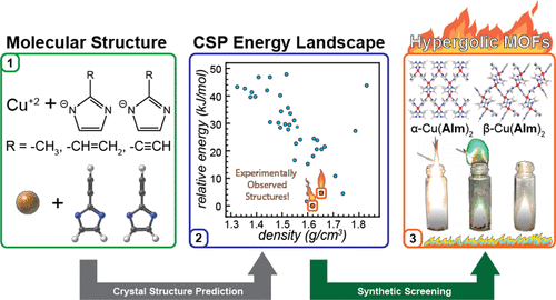Abstract: Hypergolic materials, capable of spontaneous ignition upon contact with an external oxidizer, are of critical importance as fuels and propellants in aerospace applications (e.g., rockets and spacecraft). Currently used hypergolic fuels are highly energetic, toxic, and carcinogenic hydrazine derivatives, inspiring the search for cleaner and safer hypergols. Here, we demonstrate the first strategy to design hypergolic behavior within a metal-organic framework (MOF) platform, by using simple “trigger” functionalities to unlock the latent and generally not recognized energetic properties of zeolitic imidazolate frameworks, a popular class of MOFs. The herein presented six hypergolic MOFs, based on zinc, cobalt, and cadmium, illustrate a uniquely modular platform to develop hypergols free of highly energetic or carcinogenic components, in which varying the metal and linker components enables the modulation of ignition and combustion properties, resulting in excellent hypergolic response evident by ultrashort ignition delays as low as 2 ms.