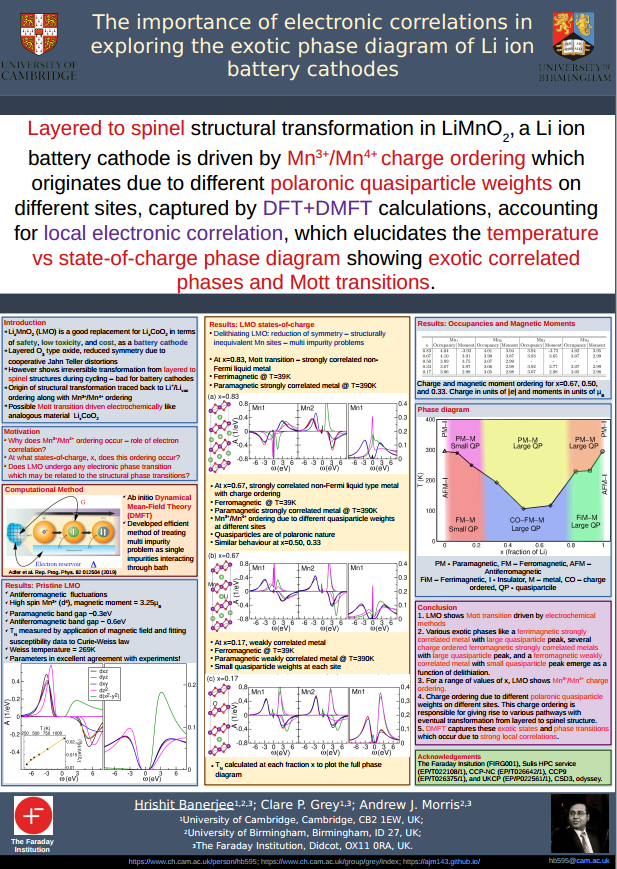 Congratulations to Hrishit for receiving the Poster Commendation award at the Psi-k 2022 conference for the poster “The importance of electronic correlations in exploring the exotic phase diagram of Li ion battery cathodes”, as part of the symposium C2 dedicated to Functional materials and devices.